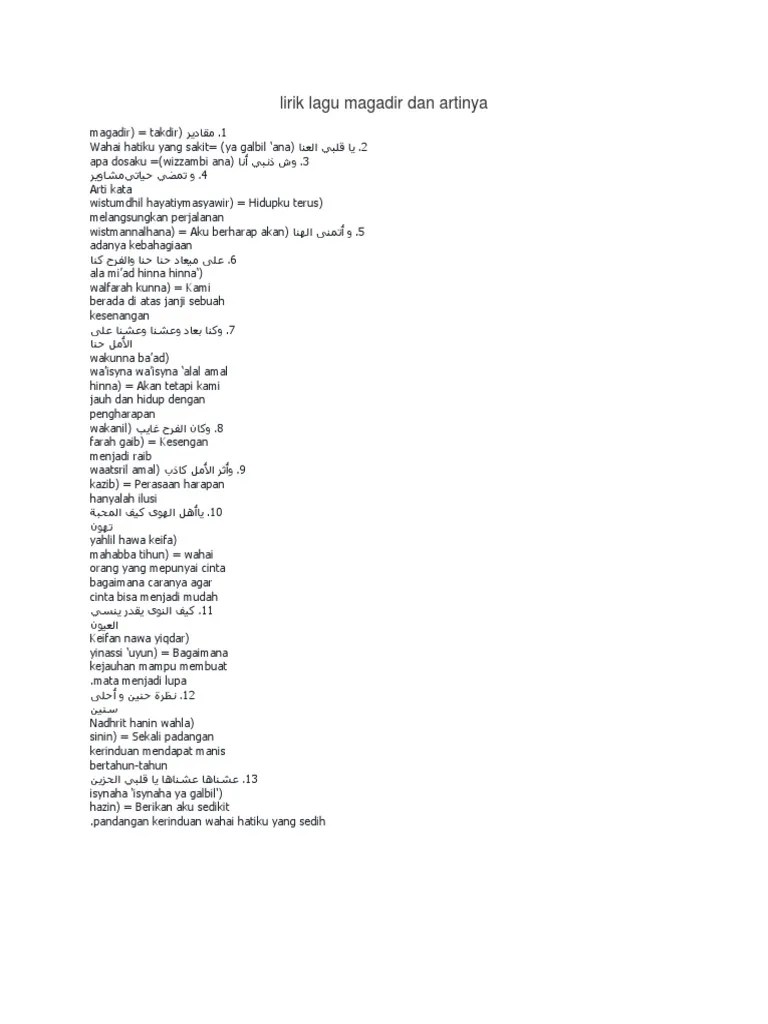 Magadir magadir ya ghalbil ala magadir magadir magadir ya ghalbil magadir wing magadir magadir ya ghalbil ala . Berikut lirik, chord dan video klipnya lirik lagu magadir (مقا . Mendengar alunan seruling di awal lagu magadir ini membuat bulu kuduk berdiri semua, apalagi ditambah intro yang penuh dengan hentakan musik . Magadir (مقا دير) adalah lagu yang dinyanyikan oleh gasentra (salma, revina, tiya, lisna). Layanan mobile dari situs entertainment terbesar indonesia, kapanlagi.com.